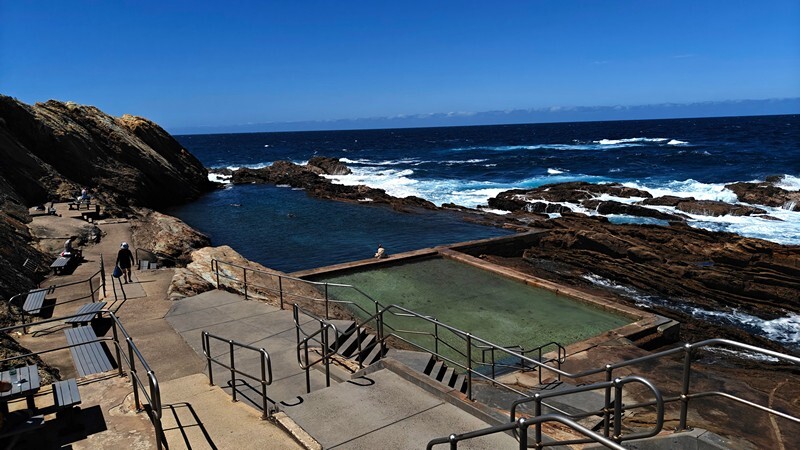 The Land Down Under | Read Trip Posts → The Land Down Under | Galleries Main Album » Sapphire Coast – Bermagui, NSW Bridge into bermagui Sign at the campground office A small flock of galahs View on walk to the blue pool Views from the overlook at the blue pool 1 Views from the overlook at the blue pool 2 Views from the overlook at the blue pool 3 The shoreline near the blue pool 1 The shoreline near the blue pool 2 The blue pool 2 Waves crashing on the rocks and entering the blue pool 1 Waves crashing on the rocks and entering the blue pool 2 Waves crashing on the rocks and entering the blue pool 3 Waves crashing on the rocks and entering the blue pool 4 The blue pool 1 Beach near campground 2 Beach near campground 3 Beach near campground 1 Main drag in town Our site 1 Our site 2 View down the road from out site