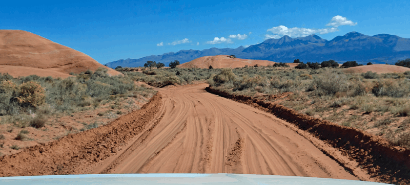 We returned to the Anticline Road where we took the first dirt road off it which is Eightmile Road – this is a difficulty 2, scenic of 8. The roads starts mostly sand but not deep sand: