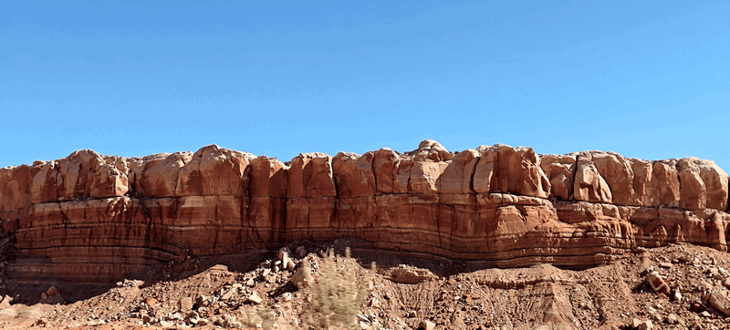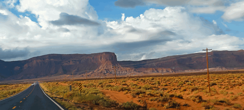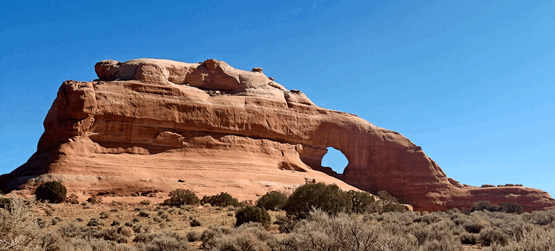 We said “so long” to Moab and began the drive pretty much due south. On our way we passed Wilson Arch: