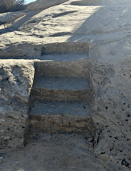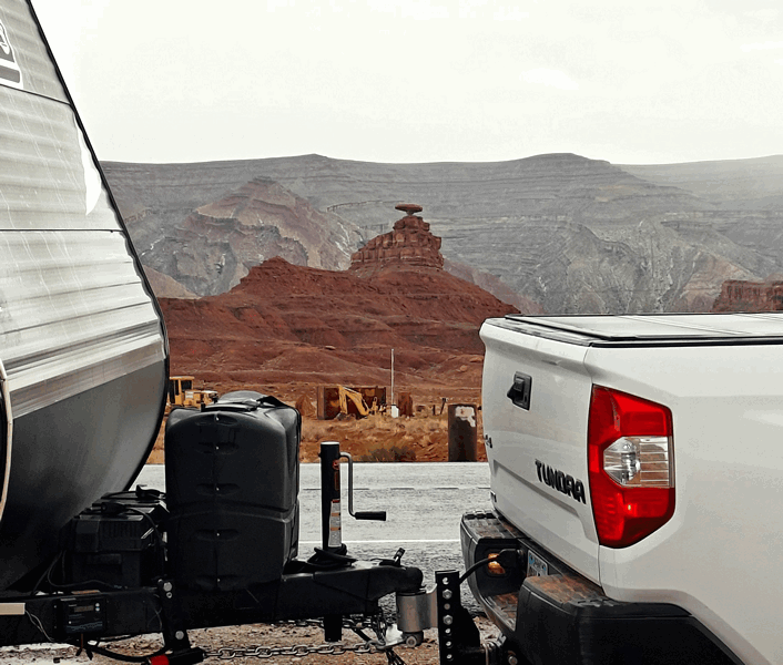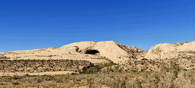 Then it was back to the trailer where Doug hitched it back up while Fran made breakfast. We decided to push on to the town of Blanding about 60 km / 40 mi further south to a wild camp on the edge of town figuring we’d get a better cell signal there (of course!) and we did.