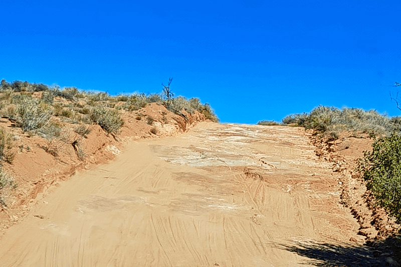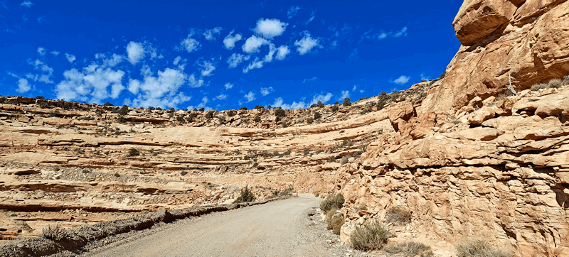 Upon reaching the UT 163, we turned eastward and shortly reached the Lower Butler Wash Road which we took north back to UT 95. This is a 32 km / 20 mi road with sandy and rocky sections which surprised us as it’s rated a 1 in difficulty and 10 in scenery. The scenery was better than the previous road but we have seen better tens.