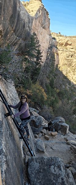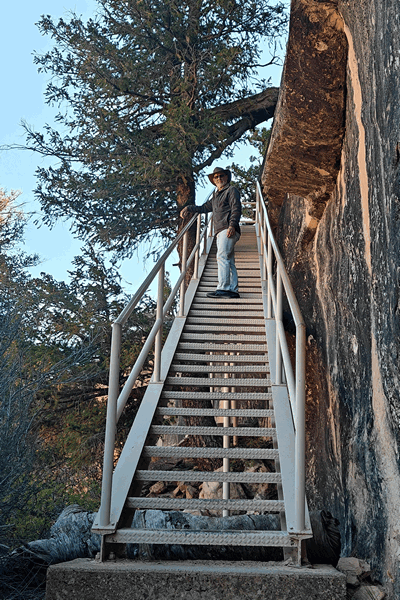 The trail includes a metal staircase, a metal ladder and as well as stone and wooden stairs.
