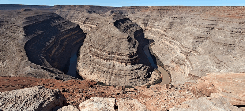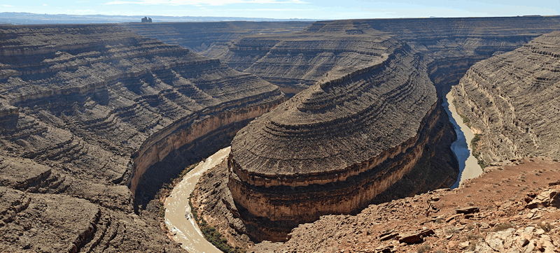 At the end of the park road, you hit pavement on Hwy 261 and drove the gravel switchbacks of the Moki Dugway to Muley Point overlook.