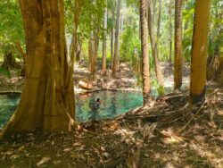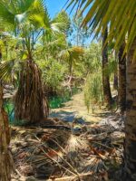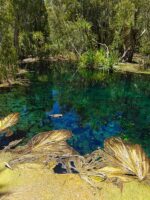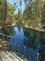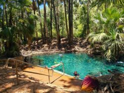 - Mataranka Thermal Pool – seemed more established but not as big. The water looked nice but when Doug felt it, it seemed cooler than the first one. It’s quite hot outside but not as humid as the past few days (maybe cause we’re further from the coast?) and again, we opted to just take photos and find a campground with power and a pool further down the road.
