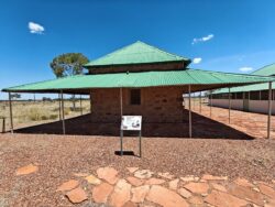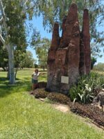 Sunday morning, we left after chores and had about 400 km 250 mi to go with no stops to make but for petrol. We did find two interesting rest areas and then a monument to the Overland Telegraph Cable Station.
