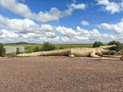 We left the campground before 10 and made our way south back on the Stuart Highway (if you recall that’s the road from Darwin all the way to Adelaide!) and stopped in Katherine for diesel at $1.79 (the cheapest we’ll see for a while) and a few groceries at Woollies as there will not be much in the way of towns until we cross the state border into Queensland in a few days. There is definitely more traffic on this highway but still not a great deal. Like much of this state, we got long stretches between towns without cell reception again.
