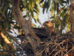 Kite in a nest; these birds are nicknamed “Fire starter” as they’ll grab a burning piece of wood and move it further to spread the fire and chase out their prey.